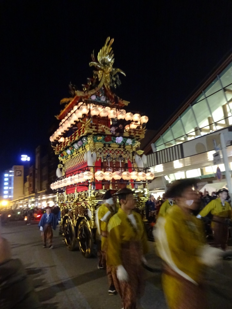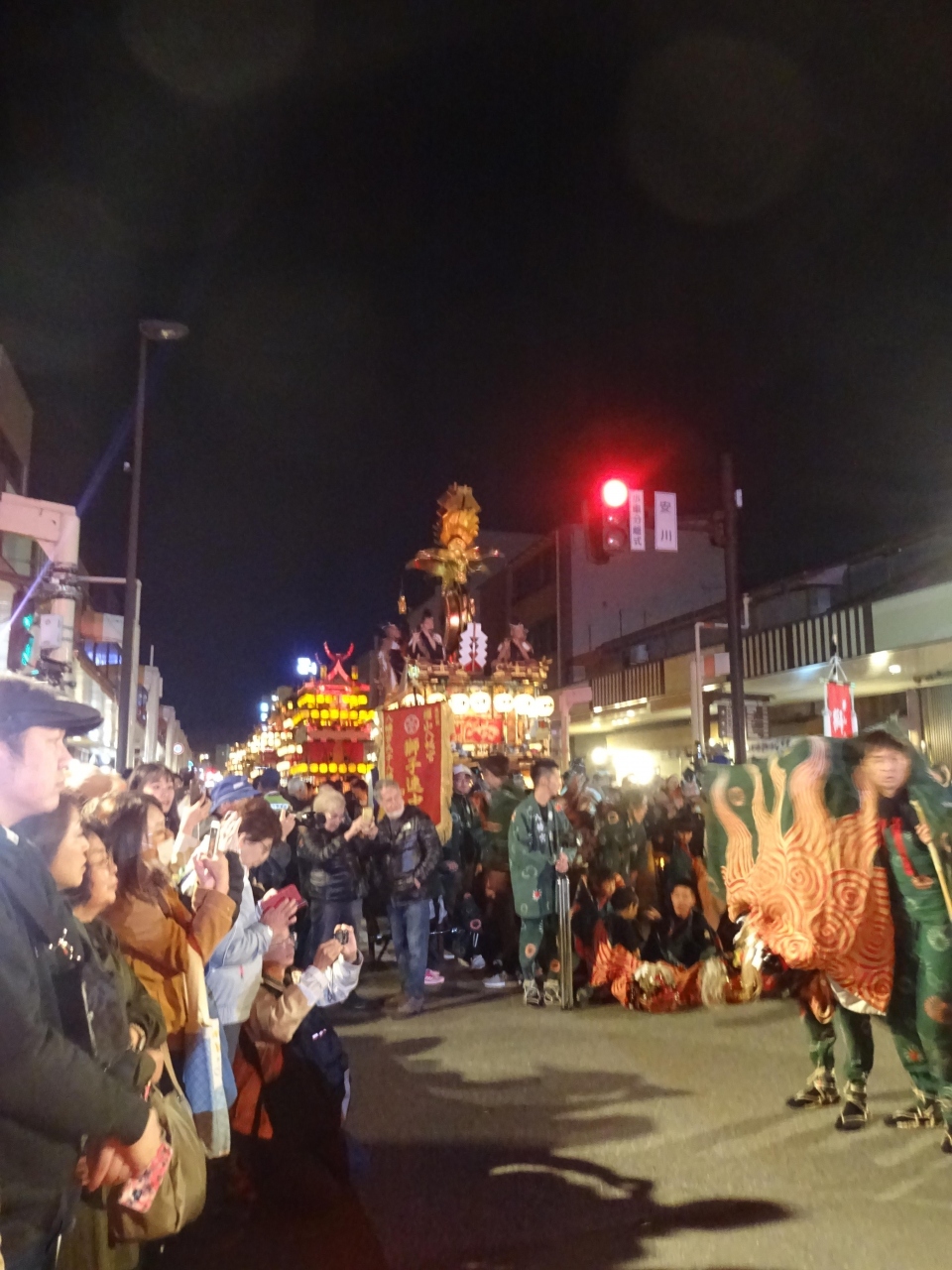 宵宮の時、駅方向から行くと凄く混雑していたが、先の方まで進んだら良いポジションが取れた。