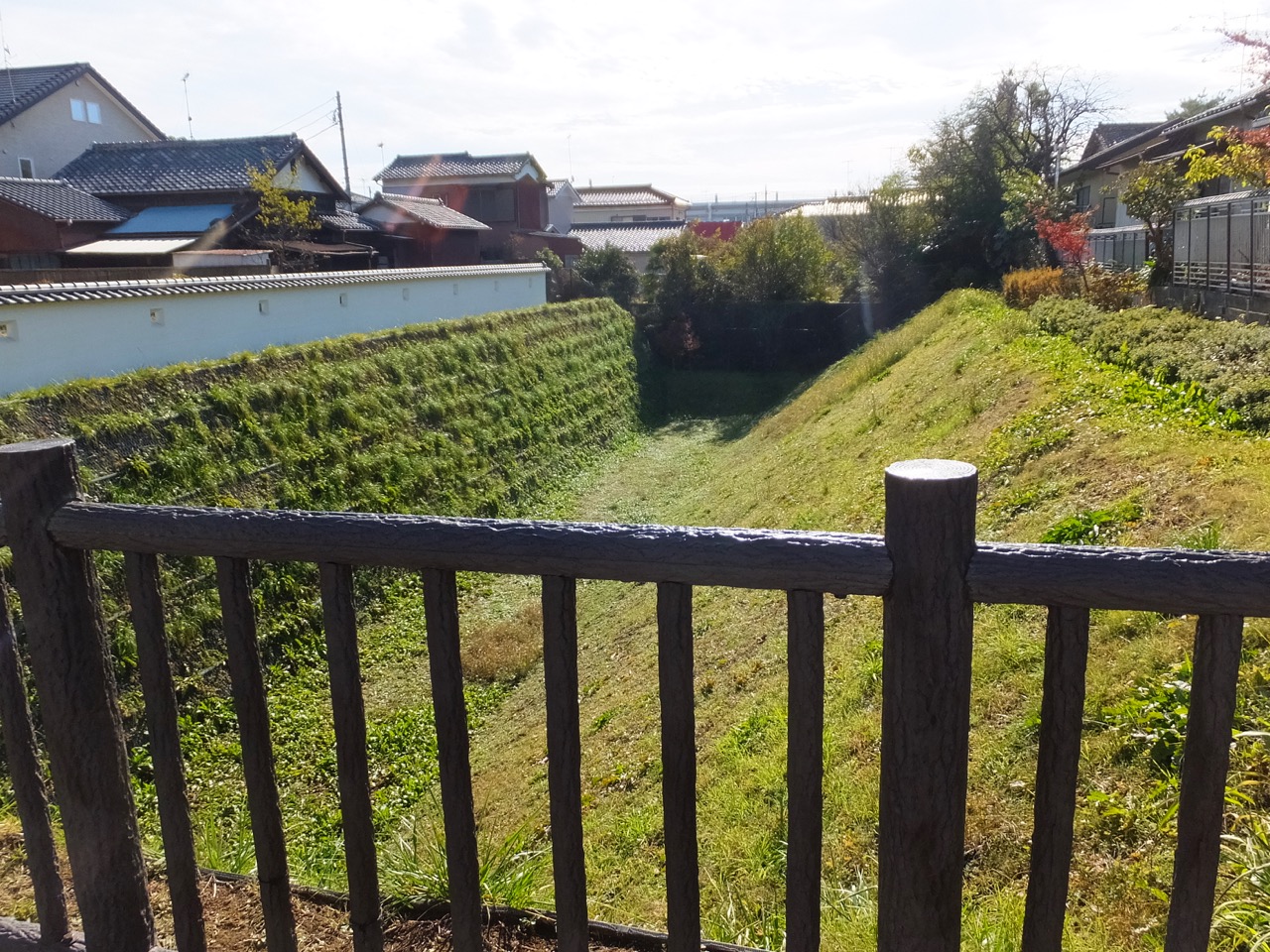 お堀の壁が、城側が急斜面になって外側が緩斜面になっているのがよく再現されています。奥行きは50mもないとは思いますが、これがお城を囲んでいたことをそっと想像してみました。