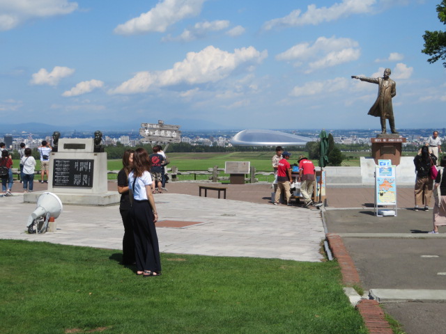 雄大な丘の上にあるさっぽろ羊ヶ丘展望台にあります、少年よ大志を抱けと言った北海道の開拓の父と言われたウィリアム・スミス・クラーク博士がモデル、展望台の代表的撮影スポットで、同じように右手を上にあげる、ポーズで写真を撮っている人が多いです、像の裏からの眺めがいいです、羊が何頭かいます。