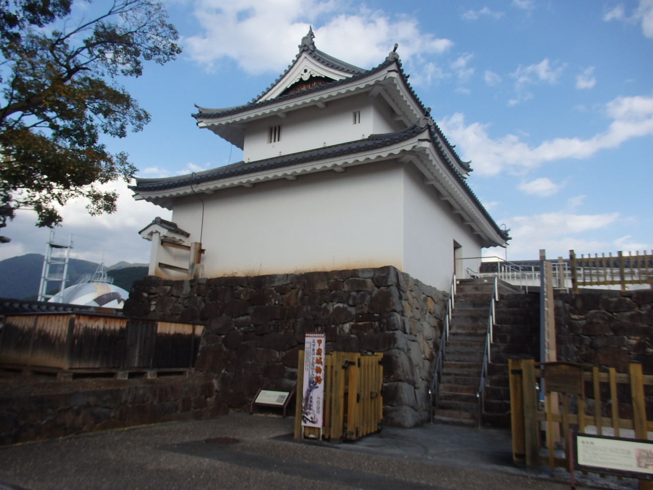 甲府城の遺構の中で、三番目に復元された施設です。二階層櫓で一番上に鯱瓦が一対乗っています。遺構、史料、絵図に基づいて復元されたようです。武器庫として使われていたようですが石落としの設備も備えています。櫓内では出土した、陶磁器、瓦、鯱瓦等、石垣の石積み技術の紹介等が展示されていて見ることが出来ます。傍で見上げると立派に見えますが、稲荷曲輪の手前から見ると、ポツンと小さな櫓が建っているだけで迫力は感じませんでしたが、櫓の東側から見ると石垣が高いので迫力があります。稲荷曲輪からだと、天守台が聳え立って見えるので、見栄え負けします。お城ファンにはお勧めです