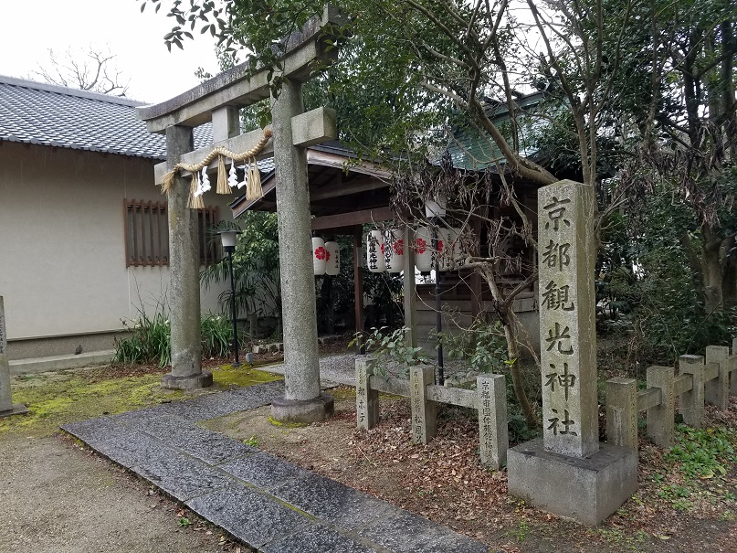 京都御苑内の近くにある宗像神社の境内社です。名前から想像できるように観光業界関係者によって近年に建てられた神社で石柵にはホテルや旅館の名前が見られました。ただ、業界の発展だけではなく道案内の神様として観光客の安全息災を祈願しているとのことなので、観光客がお参りするのも良いと思います。