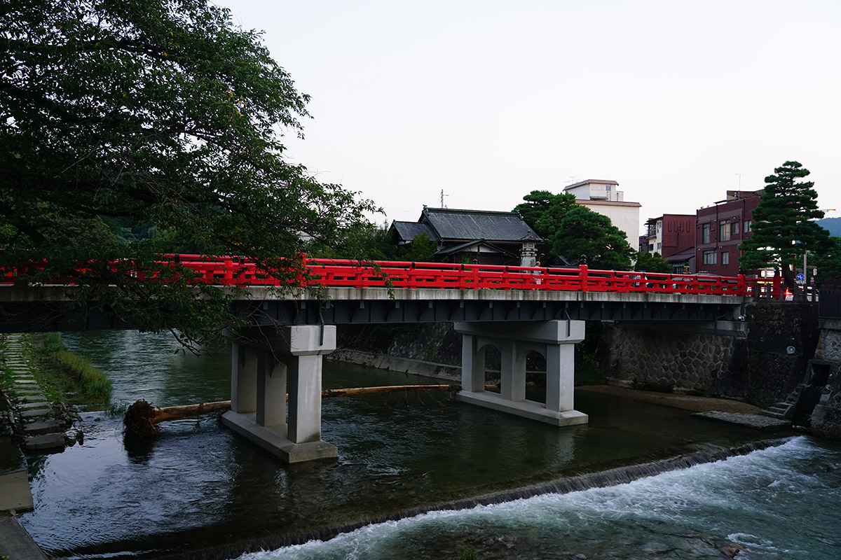 高山陣屋と三町の間にある朱塗りの橋です。ただの橋といえば橋なのですが、高山のシンボルとも言える橋です。この橋付近の宮川沿いの景観は小京都・高山らしくて素敵です。宮川沿いに遊歩道が整備されているので、のんびり散策がオススメです。