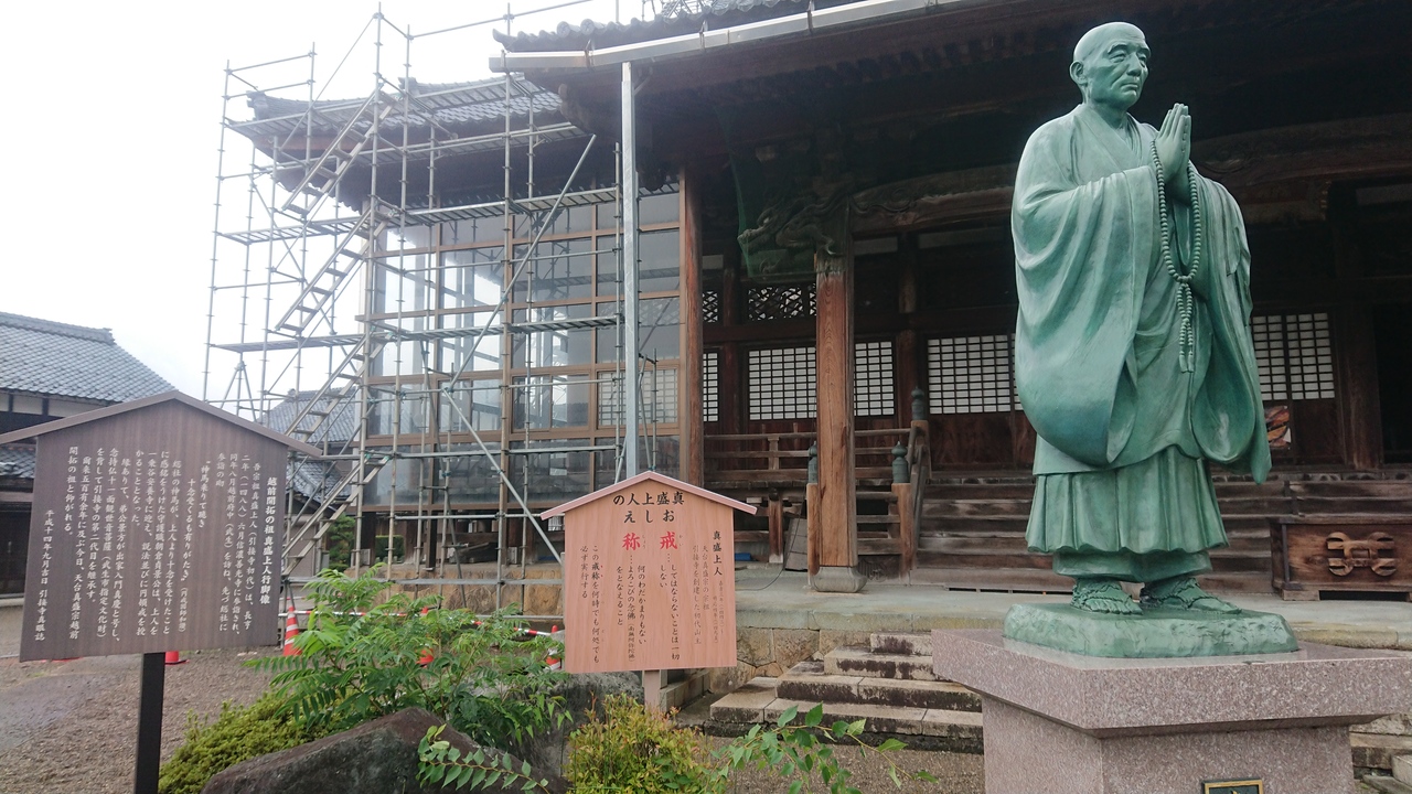武生駅から徒歩10~15分程度と近く、車でなくとも行きやすい立地でした。総けやき造りの山門がみごとな天台真盛宗の寺院です。この辺りには、妙国寺さんや総社大神宮などの神社仏閣が立ち並んでおり、散策しながら参拝して参りました。人通りが少ないため、賑やかさはありませんが、ゆっくりお参りすることができます。