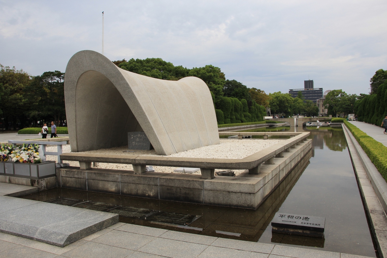 平和の池は、原爆死没者慰霊碑を囲みように造られています。