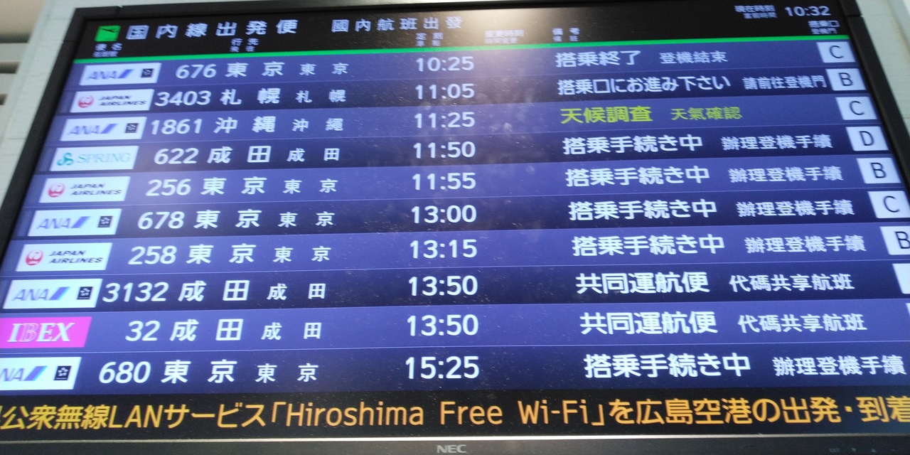 広島市街からの遠さに、他県の方はよくびっくりされる空港です。