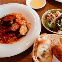 メインのパスタやラザニアなどが選べます。