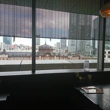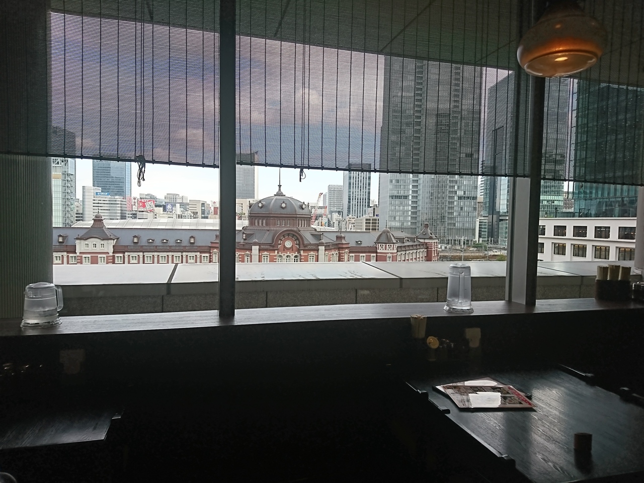 丸ビルの6階、窓からは東京駅の駅舎が見えます。