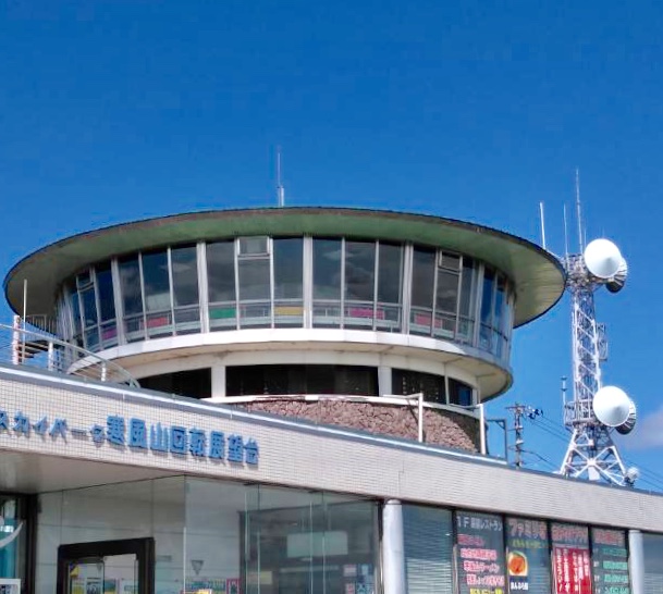自然豊かな場所にある寒風山回転展望台です。