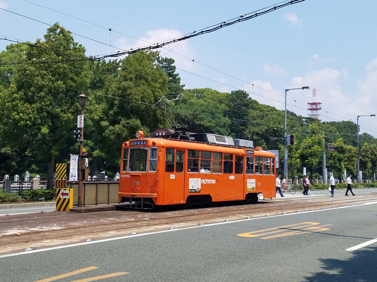 松山の街に溶け込む路面電車