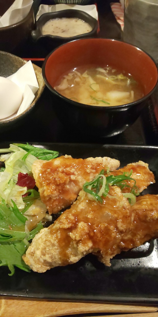 ランチは豚トロ、日替わり、カキフライの三種類。私は日替わりのマグロの竜田揚げをいただきました。