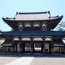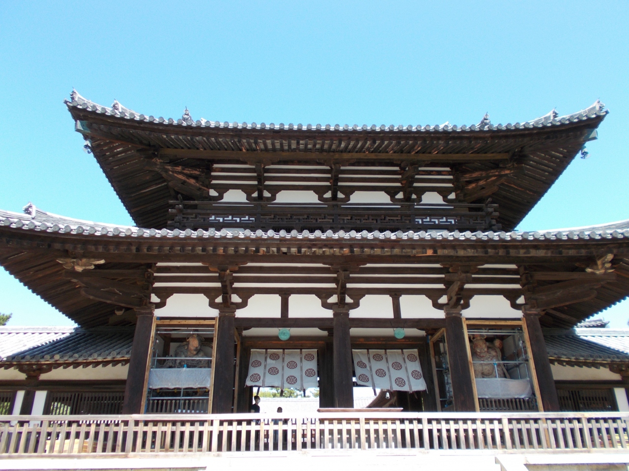 中門(飛鳥時代・国宝)は西院伽藍の入口となる門ですが、くぐることはできません。