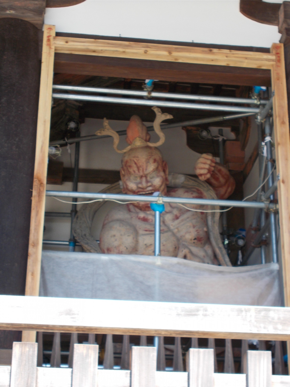 日本最古(711年安置)の金剛力士像が出迎えてくれます、修復中のようでした。
