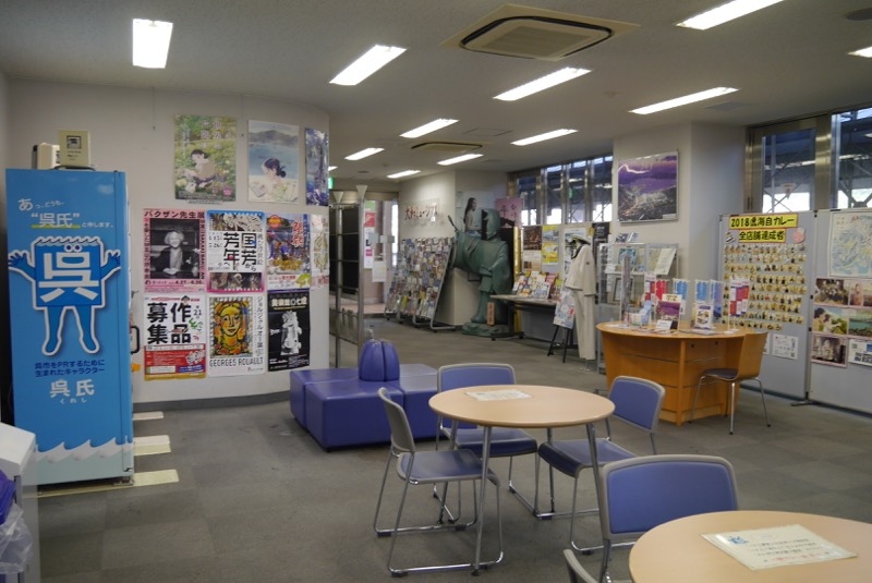 観光案内所です。呉はゆるキャラの「呉氏」を推しているのですが、カレンダーなんかも呉氏仕様のものが使われていて、地元・呉市への愛を感じました。資料は豊富で、そのディスプレイのしかたも見やすかったです。呉駅と大和ミュージアムをつなぐ通路上にあるので、訪れやすい立地だと思います。