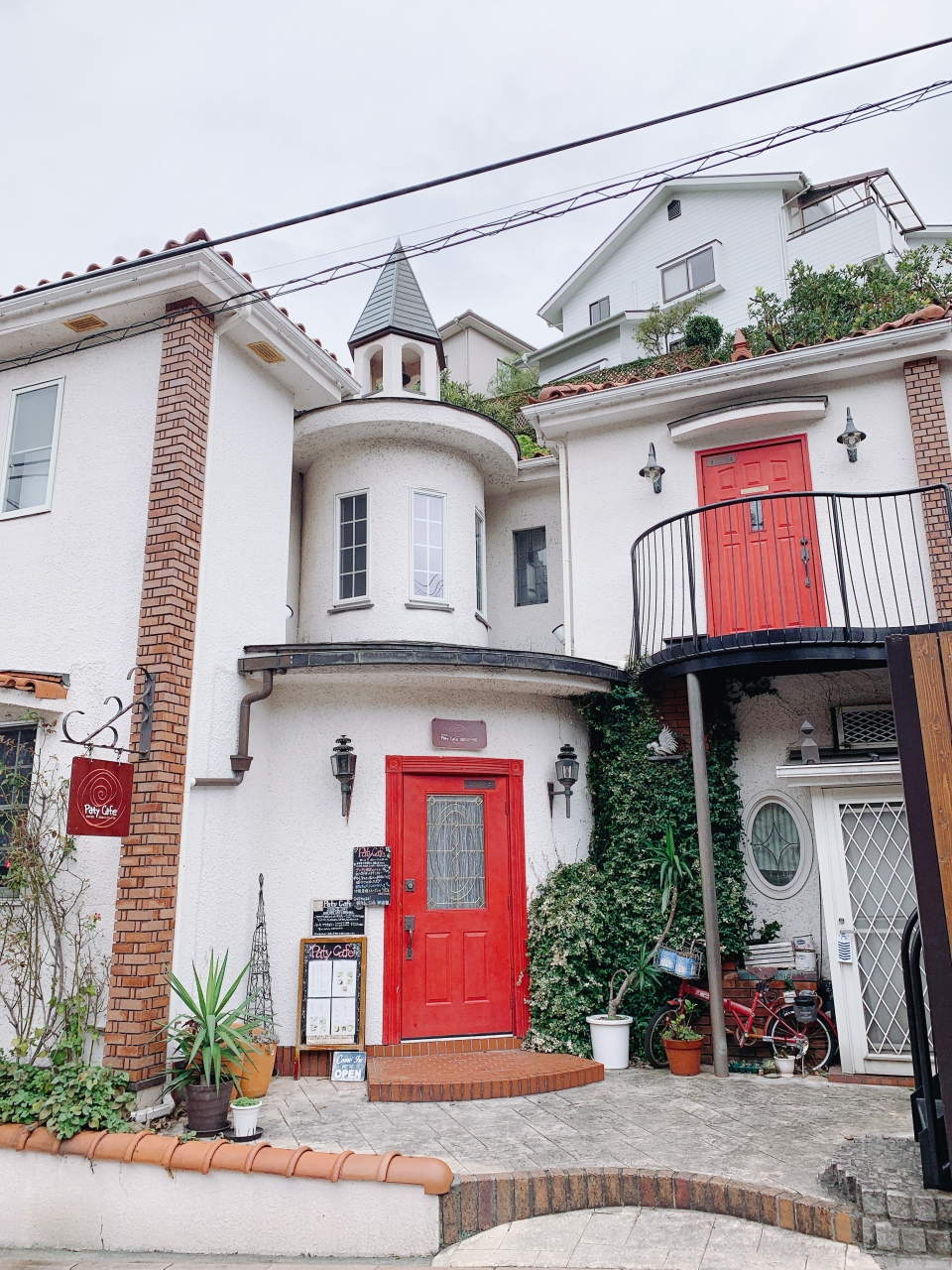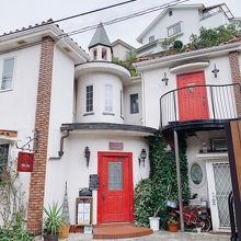 代官坂の途中にある赤いドアが可愛らしい洋館カフェです