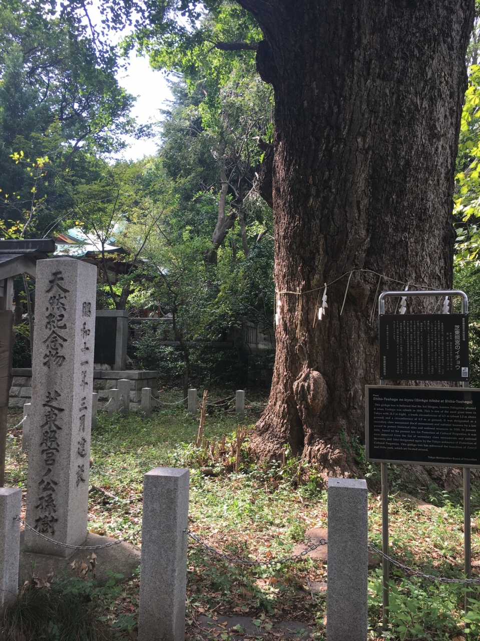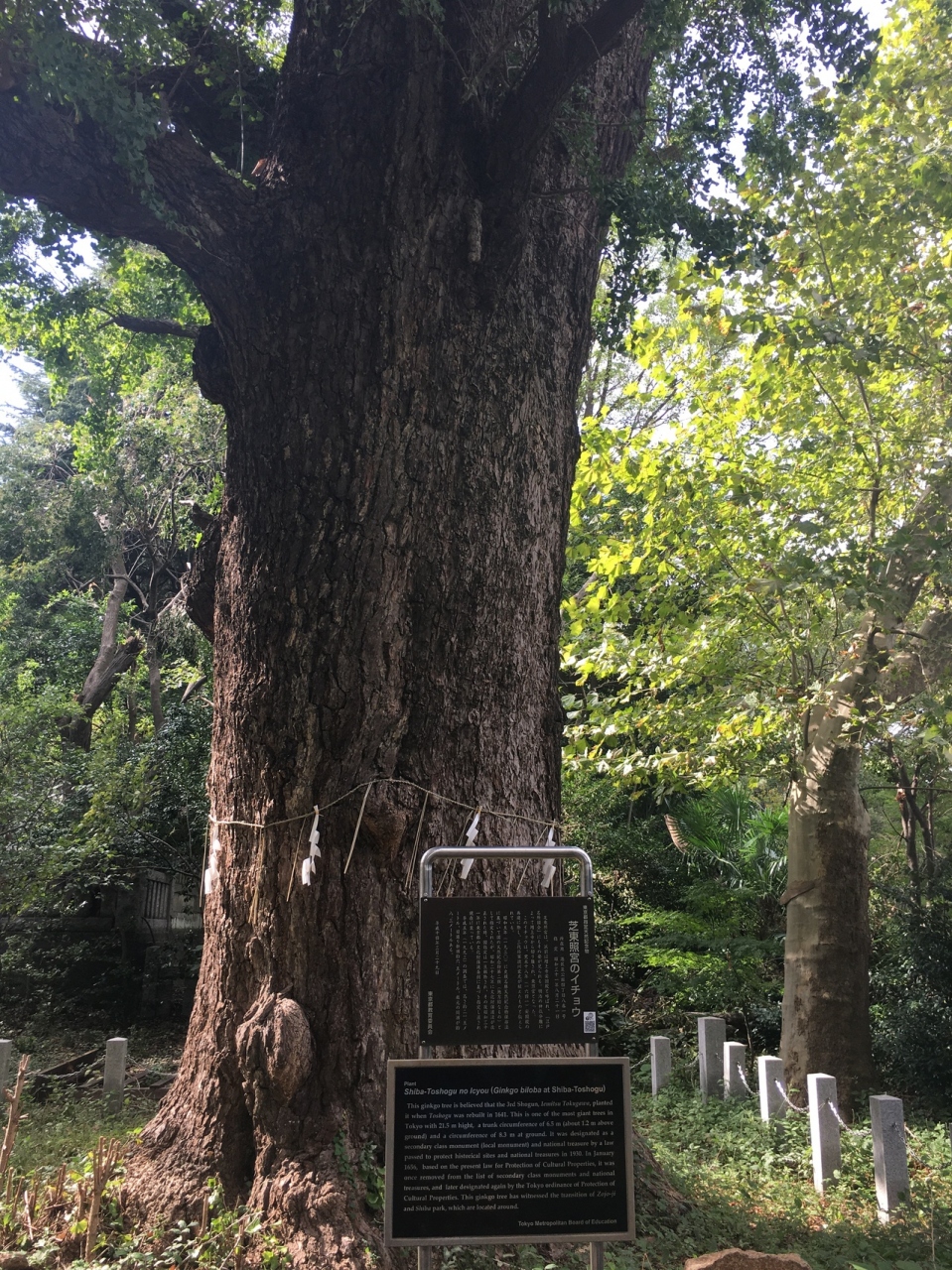 東照宮の鳥居を潜り、階段上がって右側にある大木です。下部は細い縄で注連縄として囲んでありました。枝がいくつか分かれていて、葉っぱが多い木でした。三代将軍徳川家光が植えたと言われている木だけあって、古い木に見えました。