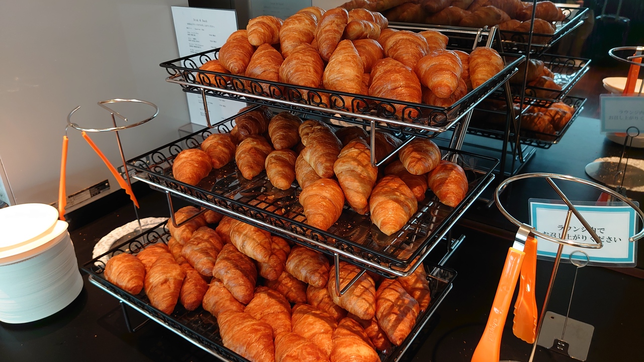 65番搭乗口の奥にあるカードラウンジです。午前8時頃に入ったらクロワッサンがありました。コーヒーやジュース、電源コンセントも十分です。空いてはいませんでしたが、それほど混雑しているわけでもなく快適でした。