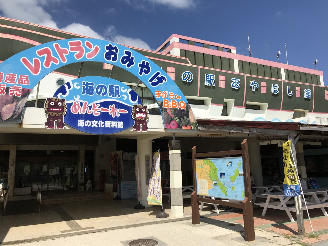 海中道路のちょうど真ん中あたりにある物産館です。外観は船の形をしています。一階は売店とレストラン、二階は資料館でした。売店では、一般的な沖縄土産のほか、うるま市の土産も取り扱っていました。二階からは外に出ることができます。海が一望できる眺めの良い展望スポットになっているので、二階にも立ち寄るのがお勧めです。