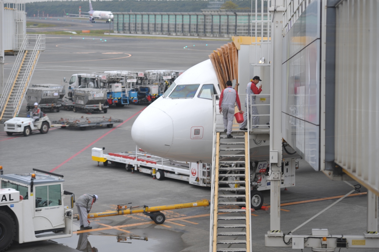 マカオ航空の駐機する場所は、荷物を受け取る場所から、ちょっと遠かった。