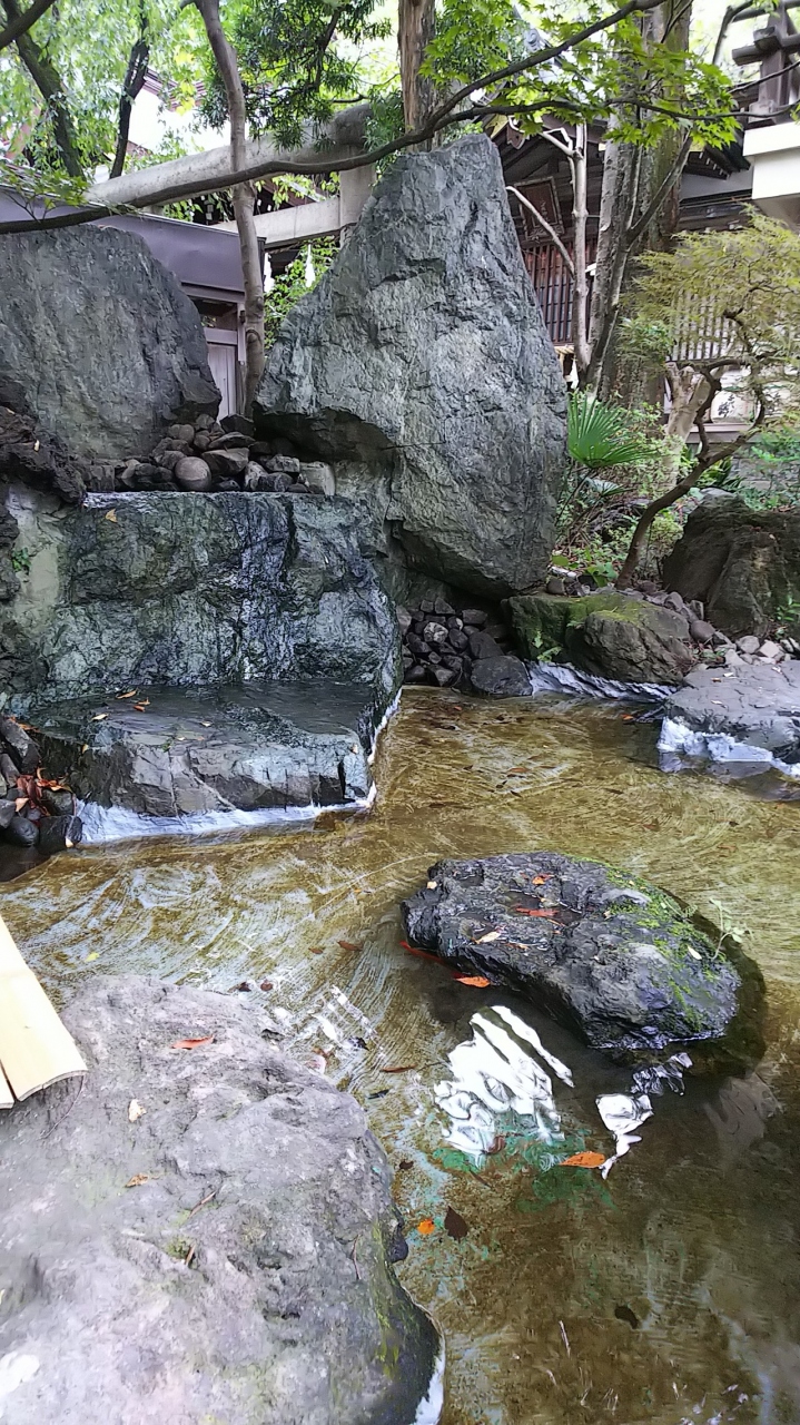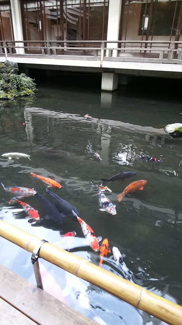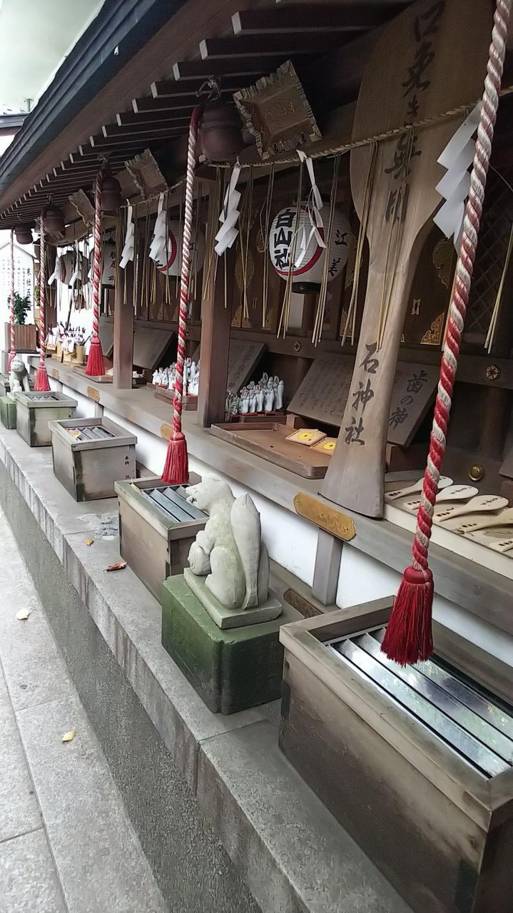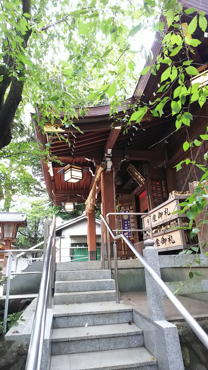 以前近くに住んでいて、こうはくが終わると出かけて行き、お焚き上げを囲みながらトシを越しお参りをして甘酒を飲む。獅子舞が舞台で舞われたりするのを見ながら年明けを感じたものでした。それ以外は静かな所でこちらは子安神社と言う位で子育ての神様。子授かり、安産の神様で七五三などの時は賑やかになった。神殿ではみこさんが舞ったのを覚えていますが、最近はいつ行っても人が多く、ご朱印は東京でも有名な場所になっているそうです。境内はそれほど広くはないのですが、右手にコイがいる御神池と厳島神社があります。向こう側の建物の欄干から写真を撮るとすてきです。正面の神殿の裏には数々の神様が並んでいる。