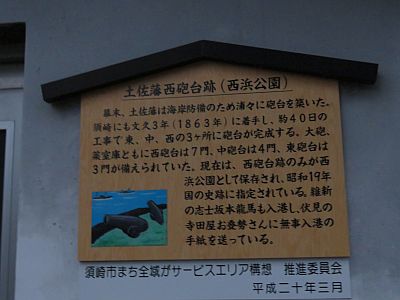 1863年に造られた土佐藩の砲台跡に造られた公園です。現在、園内に7門の砲台跡の土塁が残っています。これは西砲台と呼ばれていた砲台の遺構で、かつては4門備えた中砲台、3門備えた東砲台もあったそうです。これらすべてが現存していたらさぞ壮観だっただろうなと思いました。一部しか残らなかったのが残念ですが、良い史跡のある公園でした。