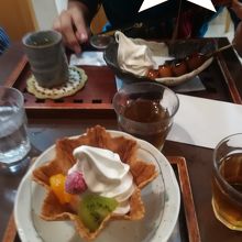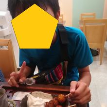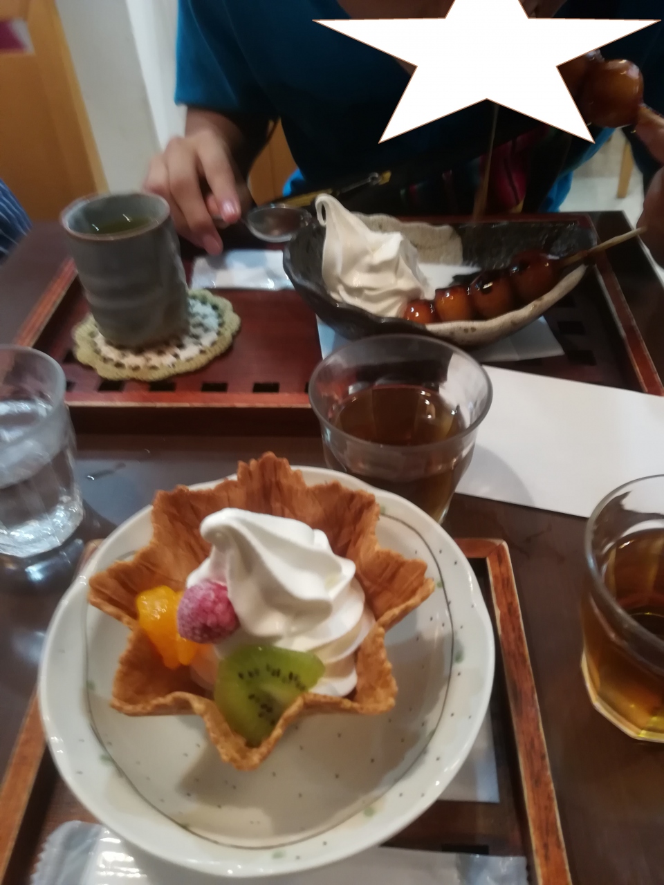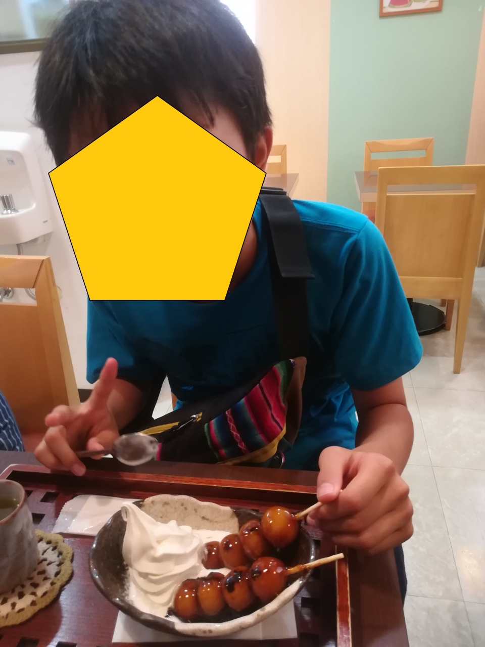 美味しい和風スイーツ店です。喫茶コーナーはあまり席数がないのでタイミングによっては少し待たないといけないといけないかもしれません。みたらしソフト500円、あんみつ580円、焼き餅600円となっております。メニューの数はそれほど多くはありません。今回、息子と入りましたが、散々歩きまわった後だったので一息付けてよかったです。