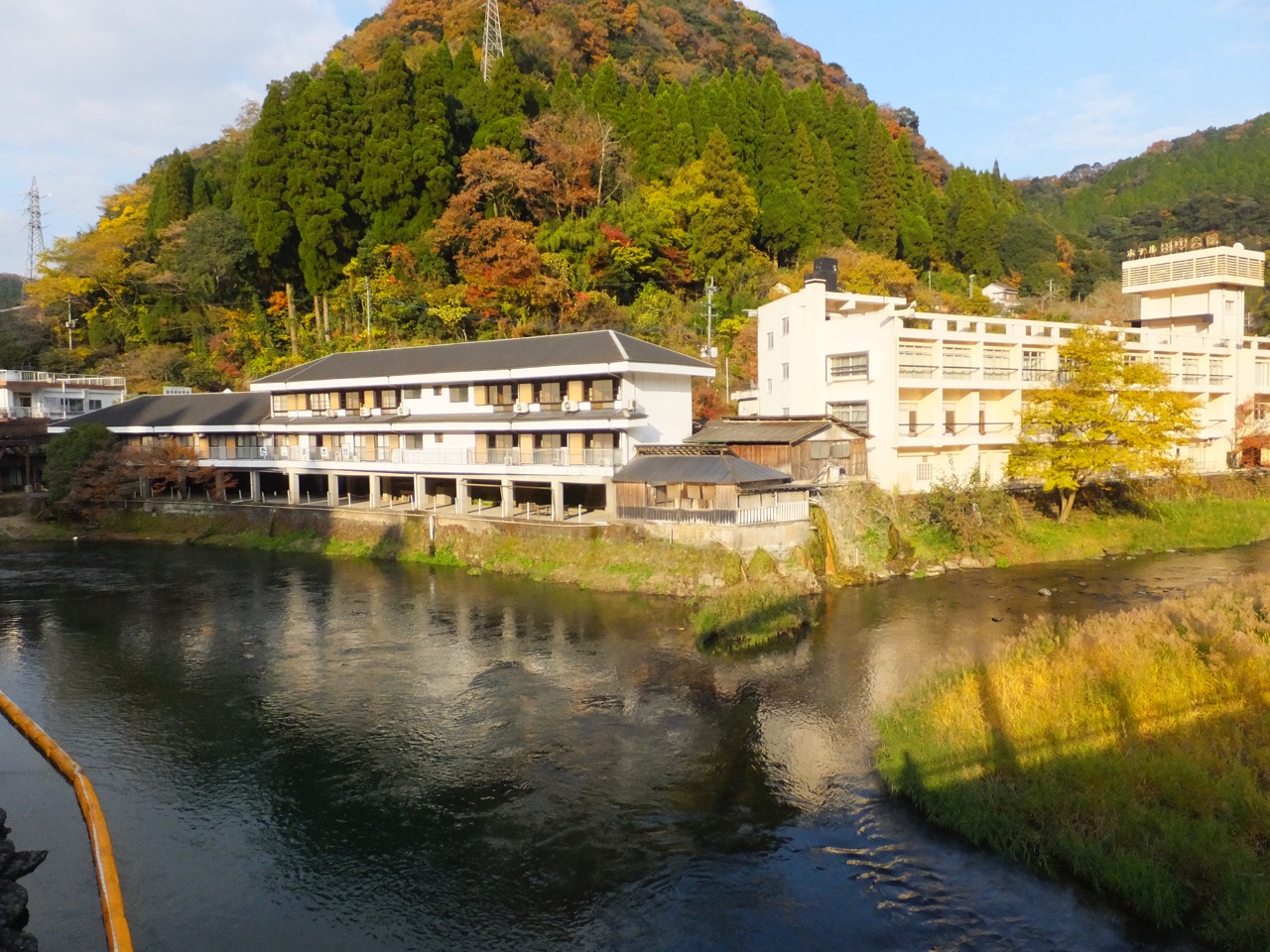 天降川(あもりがわ)に沿って細長い谷に湯治宿やそれから発展したような温泉旅館、高級なお宿から昔ながらの古びた湯治宿まで、バラエティ豊か。ひなびた雰囲気ですが、いろんな要求に応えられる宿が揃っているのがいいです。それも湯治宿主体の雰囲気なので、そのような宿が好きな向きには高級宿のなかにぽつりと、ということがないので安心して宿泊できます。