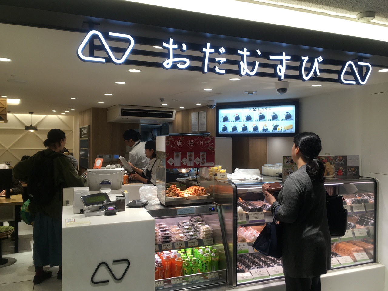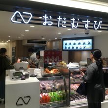 小田急新宿駅地下西口改札を出たところにあるおにぎり専門店です。小田急を利用して新宿駅で「朝食おむすびセット」をイートインしました。お好みのおにぎり2個、総菜3品、味噌汁のセットです。シャケと明太子を選びました。生温かいおにぎりはホットします。