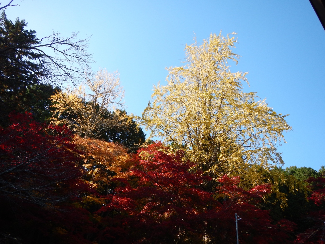 私は11月中旬に訪れましたが、紅く色づいたモミジと黄色く色づいたイチョウがとても綺麗でした。