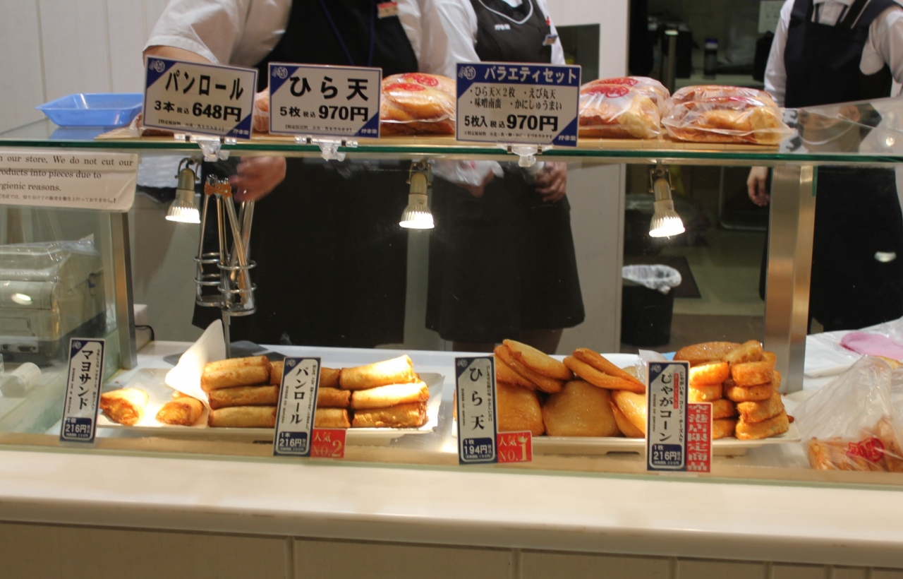 一般的な蒲鉾もありますが、ここのウリは魚のすり身を原料とした揚げたてのかまぼこですが、えびやチーズ、じゃがいもなどを使った商品もあります。