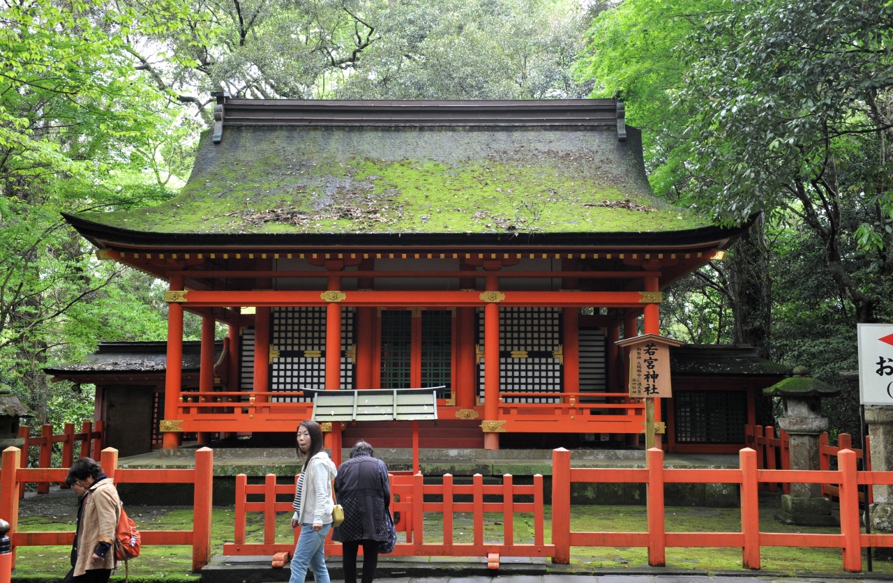 上宮に参拝する途中、石段の中腹、踊り場のような場所にあるのが、若宮神社だ。「若宮」の名が示す通り、八幡神として祭られる応神天皇の若宮である大鷦鷯命(仁徳天皇)と皇子を祭神としている。参道途中にある「お参りに外せない神社」という感じだ。