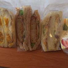 テリヤキチキン、たまご、コロッケとフルーツサンドを購入。
