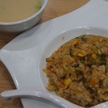 五目炒飯で、しっかりとした味付け。量は、それ程でもない。