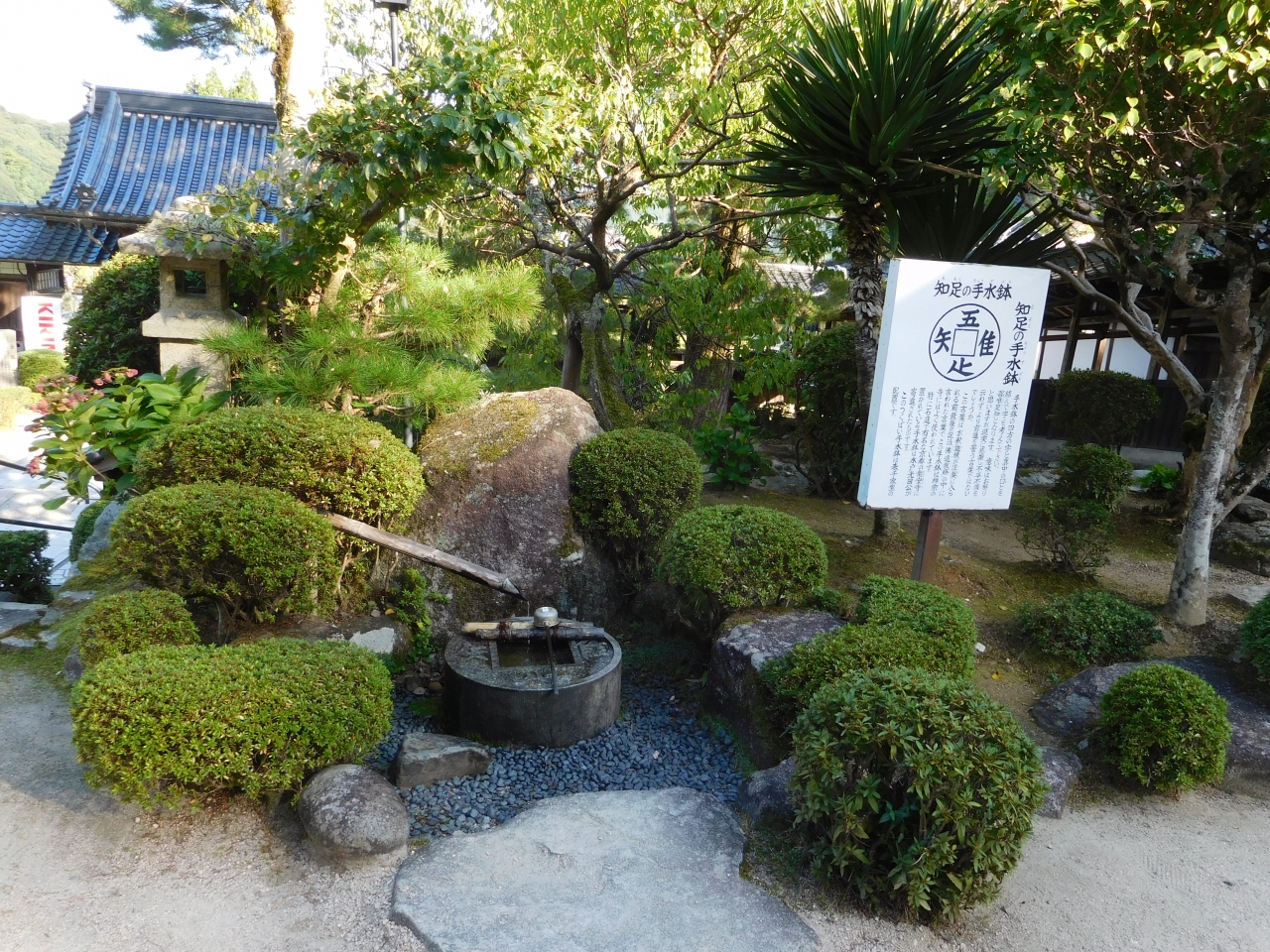 国宝瑠璃光寺五重塔を見学した後、「瑠璃光寺」でお参りをしました。境内は綺麗に整備され、「水かけ地蔵」、「知足の手水鉢」、「杓底一残水」などもあり、じっくり見て回ると、いろいろな発見がありました。小高い位置にあるので、五重塔が同じ高さ位に見えました。