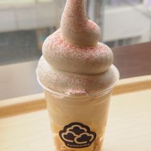 ソフトクリームには、苺パウダーが振ってあった。