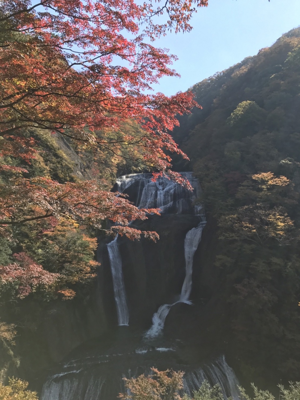袋田の滝の紅葉は、滝とともに流れてくる水しぶきが、紅葉を照らしてとても綺麗でした。