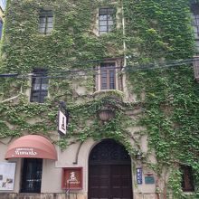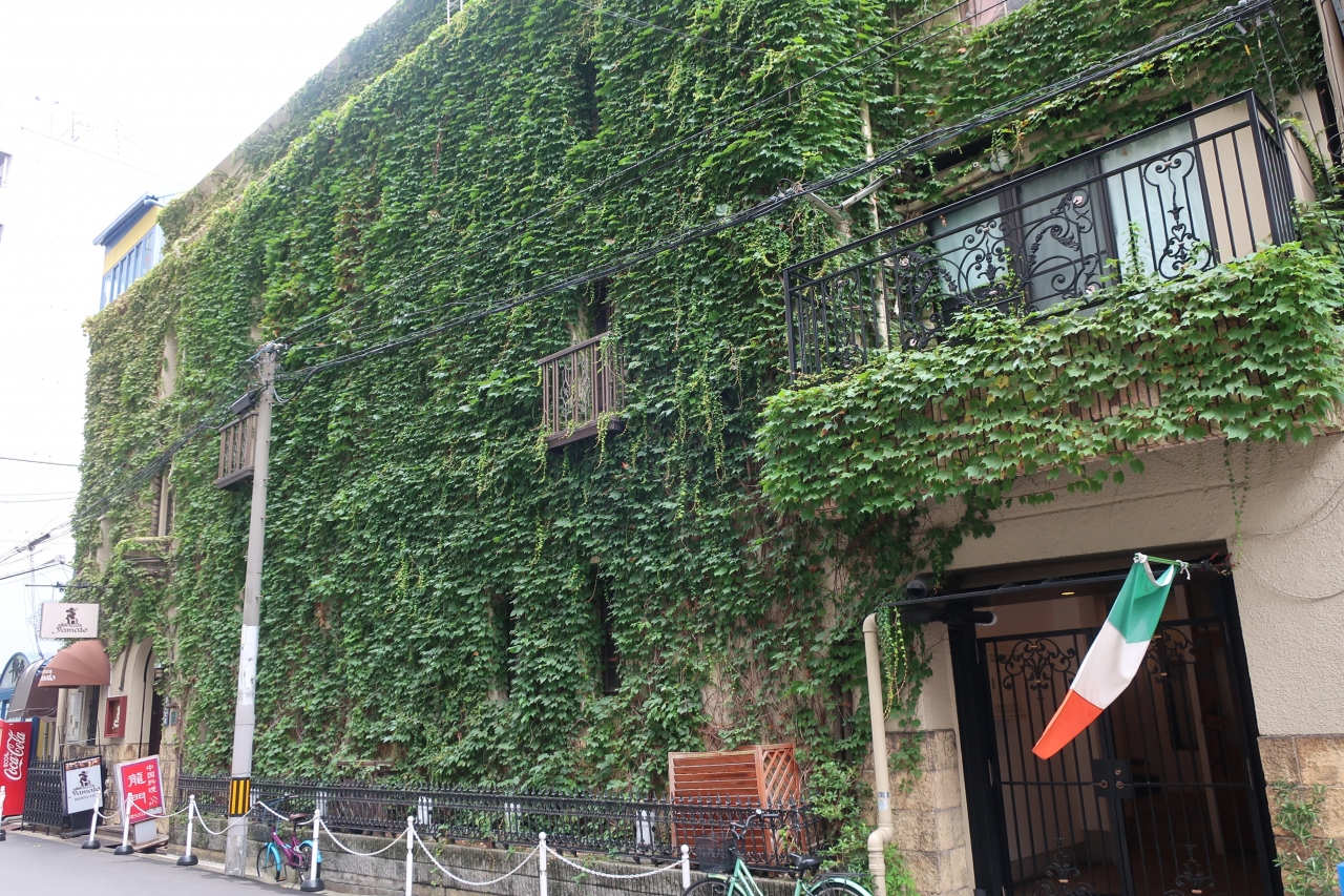 小西家住宅のある堺町筋から西に入った所に蔦の絡まる洋館があります。この洋館が青山ビルです。大正10年に建てられた建物は鉄筋コンクリート造りの5階建てのスパニッシュスタイルの洋館です(蔦で分かり辛いですが)。個人の住宅として建てられ現在は国登録有形文化財にしてされ、大正時代のガラス窓やステンドグラスが今も残り、階段も特徴的な魅力的な建物。北浜には沢山のレトロ建築がありますが、一風変わった洋館です。