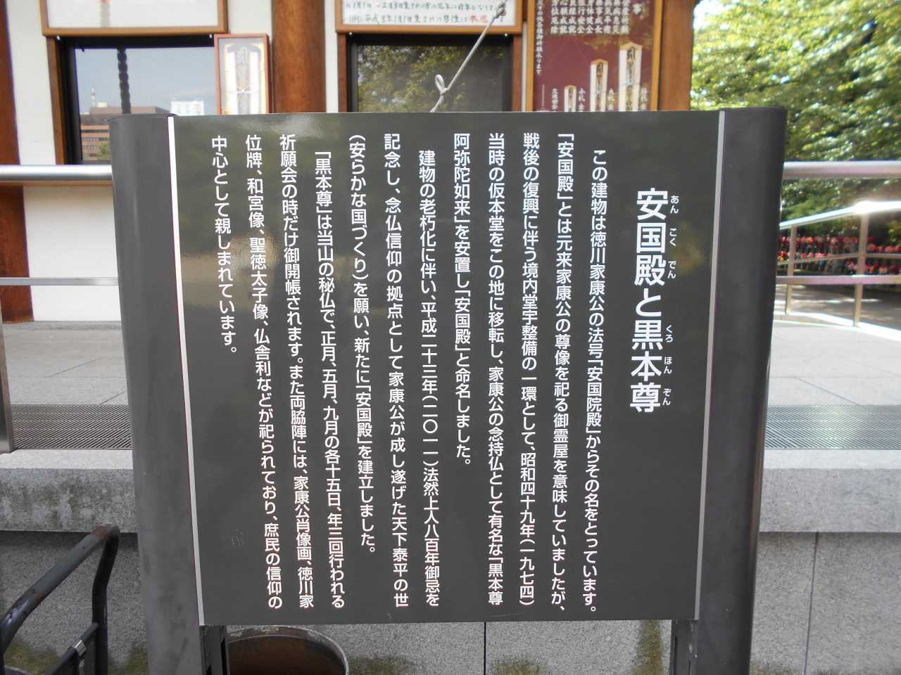 浄土宗総本山増上寺の境内本堂右側に建つ御堂で平成23年法然上人生誕800年を記念して旧堂宇を建て替えた安国殿です。本堂中央に恵心僧都の作「黒本尊」が祀られているそうですが秘仏で御開帳はされていませんでした。勝運や厄除けの仏として尊崇を集めているようです。一寸真新しくて感激出ません。