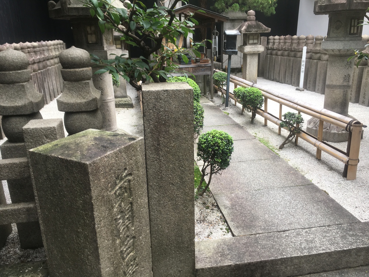 三条大橋の西詰に高瀬川に架かる小さな三条小橋のたもとにあります。三条河原で秀吉に処刑された秀次一族の供養塔が境内にあります。子供たちを含め39名の墓標が整然と並んでいます。喧騒の三条界隈でここだけは静寂な空間でした。