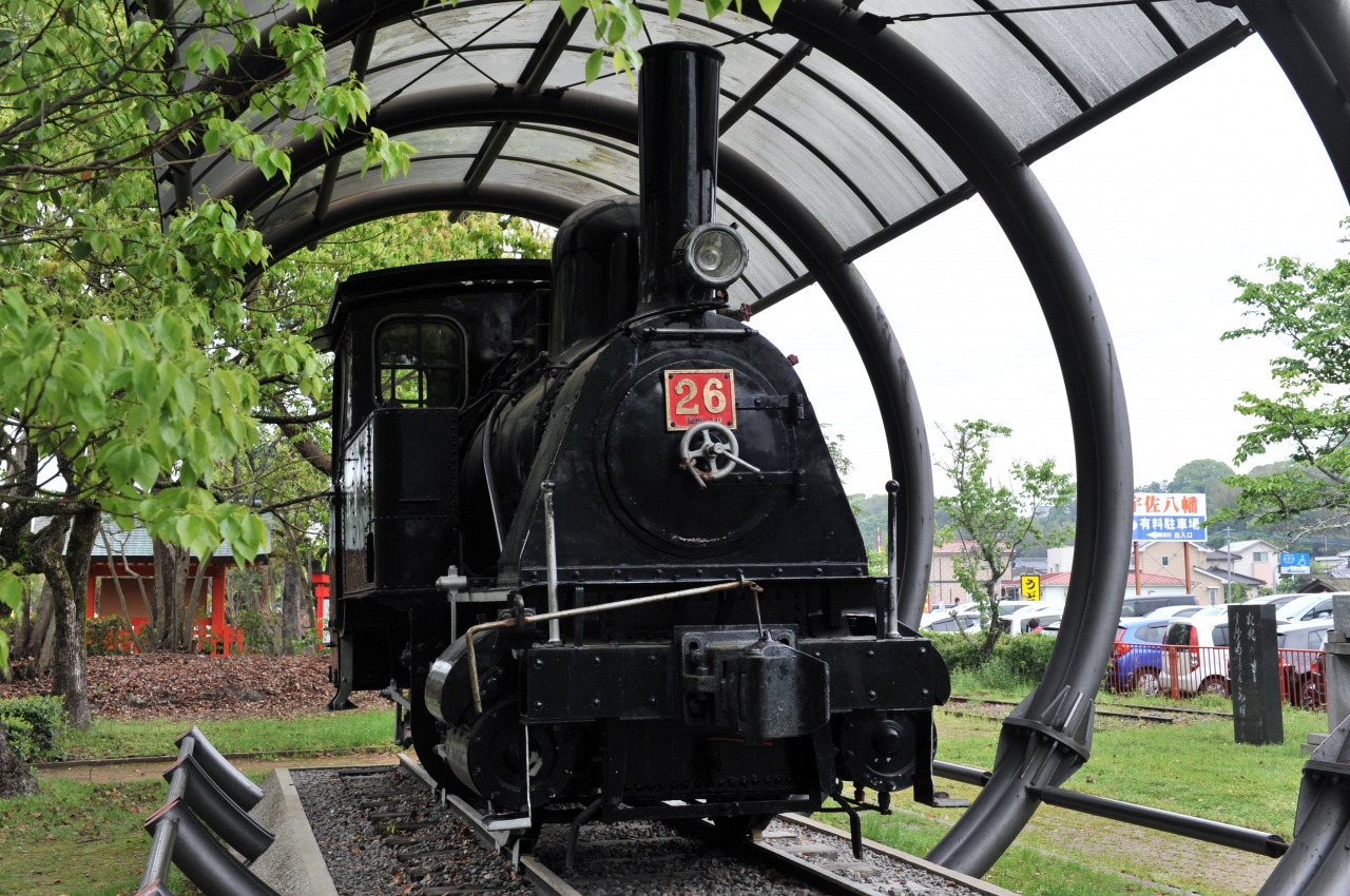 伊勢神宮、奈良の大仏など庶民のお参りにつきものが、汽車だ。大分交通の宇佐参宮線は1916(大正5)年に開通し、豊後高田、宇佐駅、宇佐神宮間を結んだ。1965(昭和40)年に廃線となったが、この機関車も「引退」したという。この機関車は1889(明治22)年に開設された九州鉄道(国鉄の前身)がドイツ・クラウス社から3形式50両を輸入したものだ。1948(昭和23)年に大分交通に売却されたという。同タイプの車両は九州では唯一、国内では3両しかない。ちなみに、宇佐参宮線の駅は機関車が保存されている横の大型駐車場になっているという。