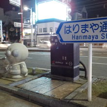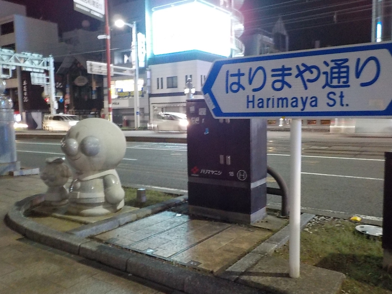 はりまや橋の近くのはりまや通り、近くに椅子があるのでアンパンとツーショットで写真を釣る観光客で賑やかでした。