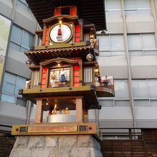 道後温泉の商店街の広場の真ん中に大きな時計を見つけました。