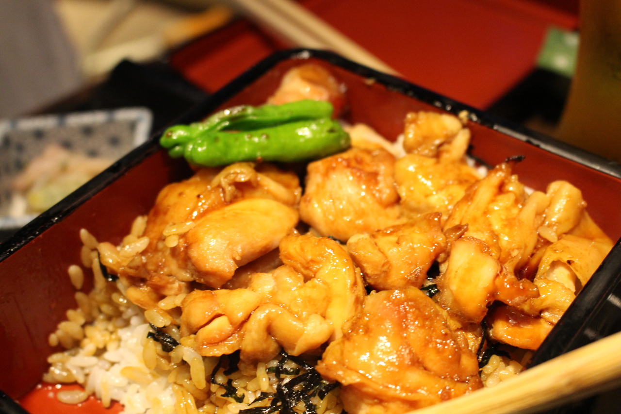 上野の駅前にある商業ビルの地下にあるレストランです。鶏肉料理が看板メニューの居酒屋さんですが、お昼時にはランチメニューがあり、親子丼や鶏重、そばなどがいただけます。おしゃれな店内は区切りがあるので隣客が気になりません。鶏重はやわらかくて、ジューシー、香ばしくて良かったです