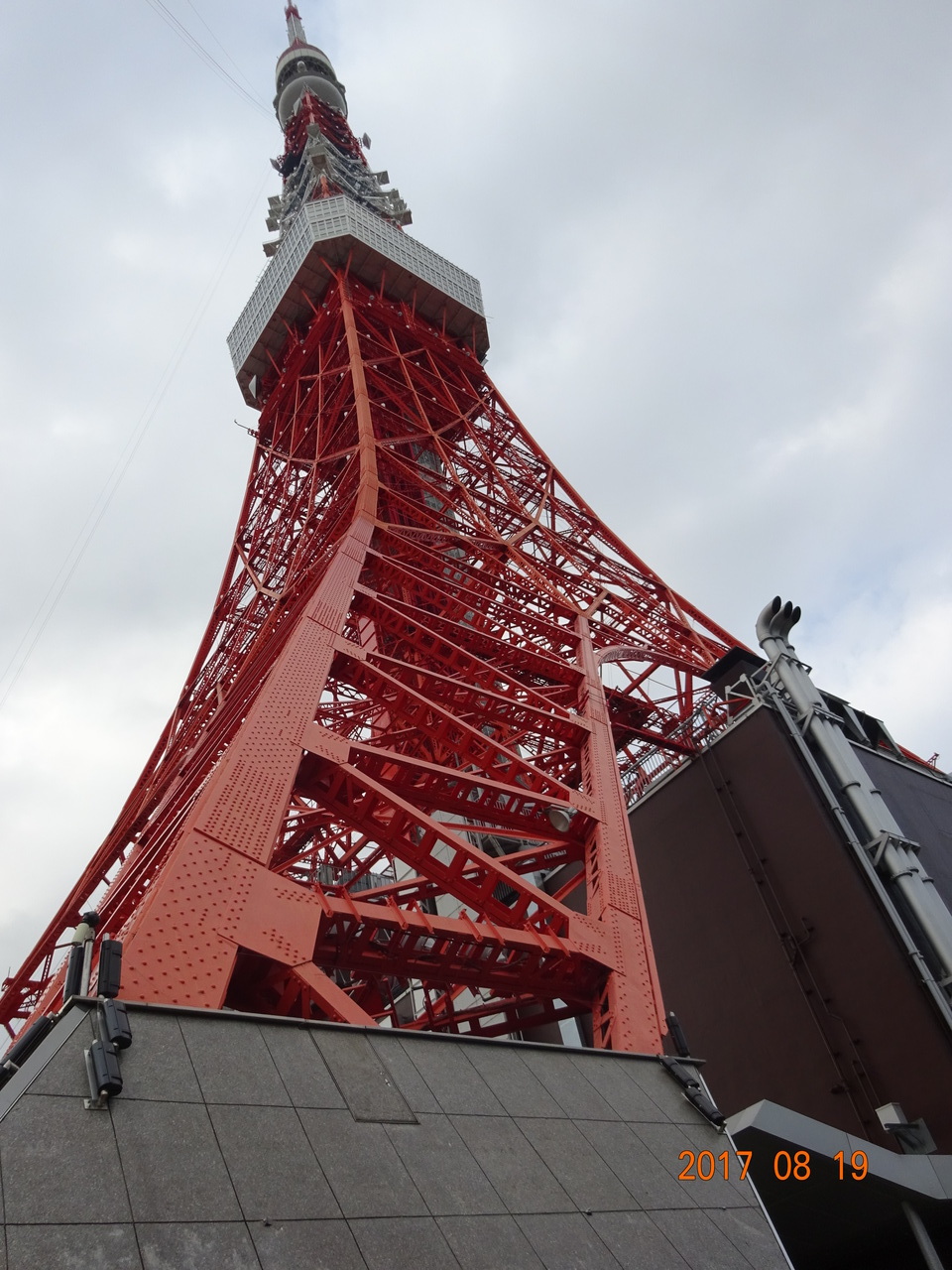 東京都内、港区芝大門にある東京タワーです。東京スカイツリーができたので観光客が少ないと思いきや外国人観光客もふくめ、けっこう賑わっていました。東京タワーの下に立ち上を見上げると迫力のある鉄骨ときれいな朱色が映えます。なかではレストランやカフェもありました。