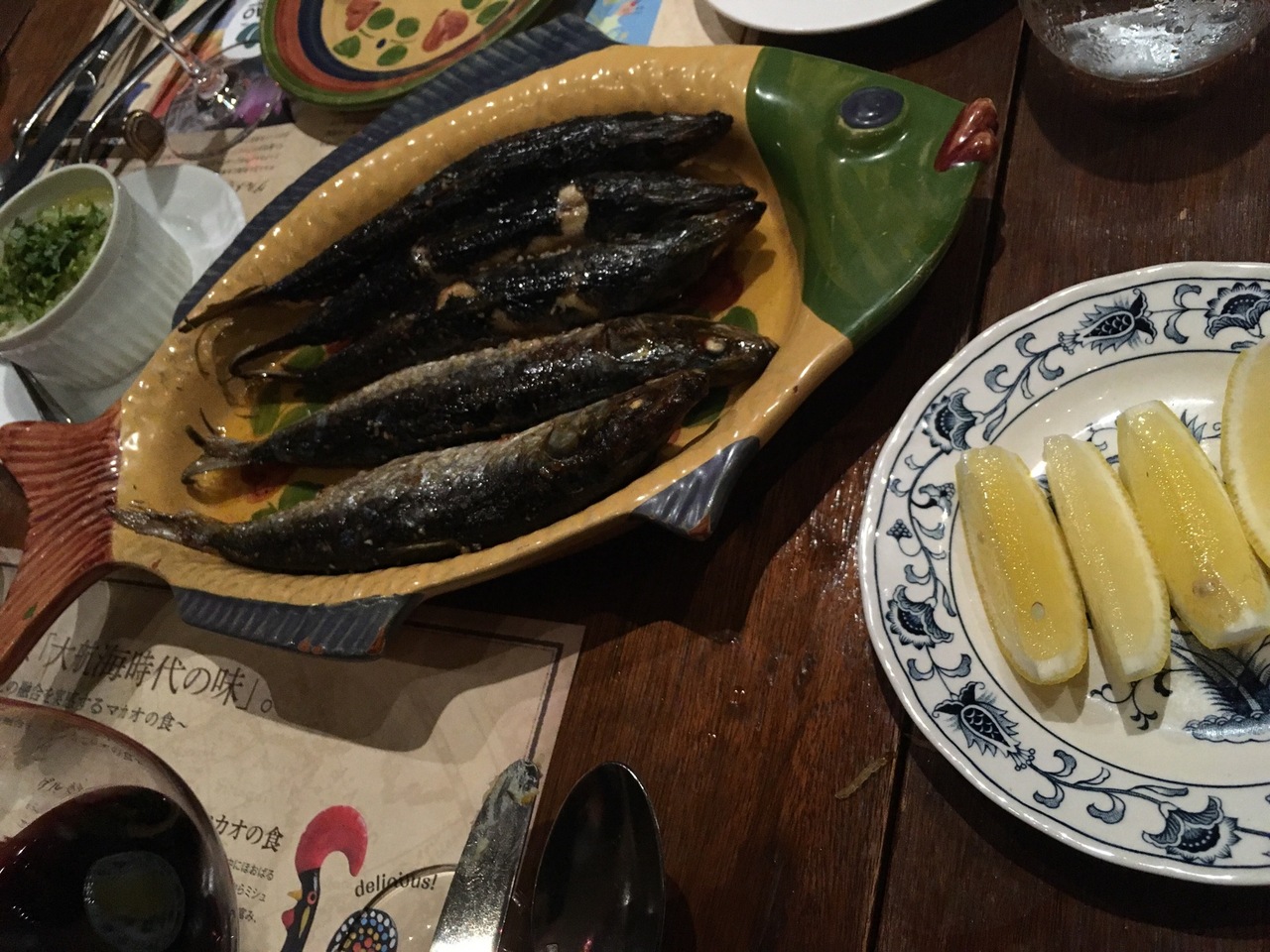 ポルトガル家庭風料理が多く並び、特にイワシは丸々太った立派なものがふっくらオーブン焼きにされ、タレもさっぱりとしてとてもおいしくいただいた。