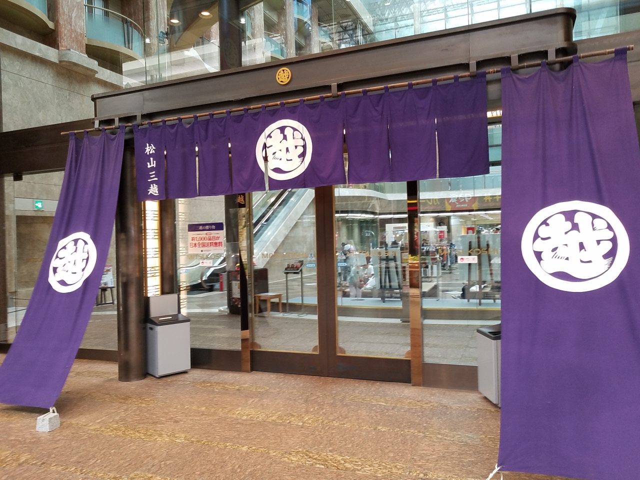 松山一番の繁華街、大街道の電停駅近くに老舗百貨店の三越があります。平日でしたが結構人が居て地元に密着している印象でした。吹き抜けの開放的な建物で1階のオープンスペースでは催事、イベントで賑わいます。地階の食品フロアは規模は小さいですが土産品も揃っています。