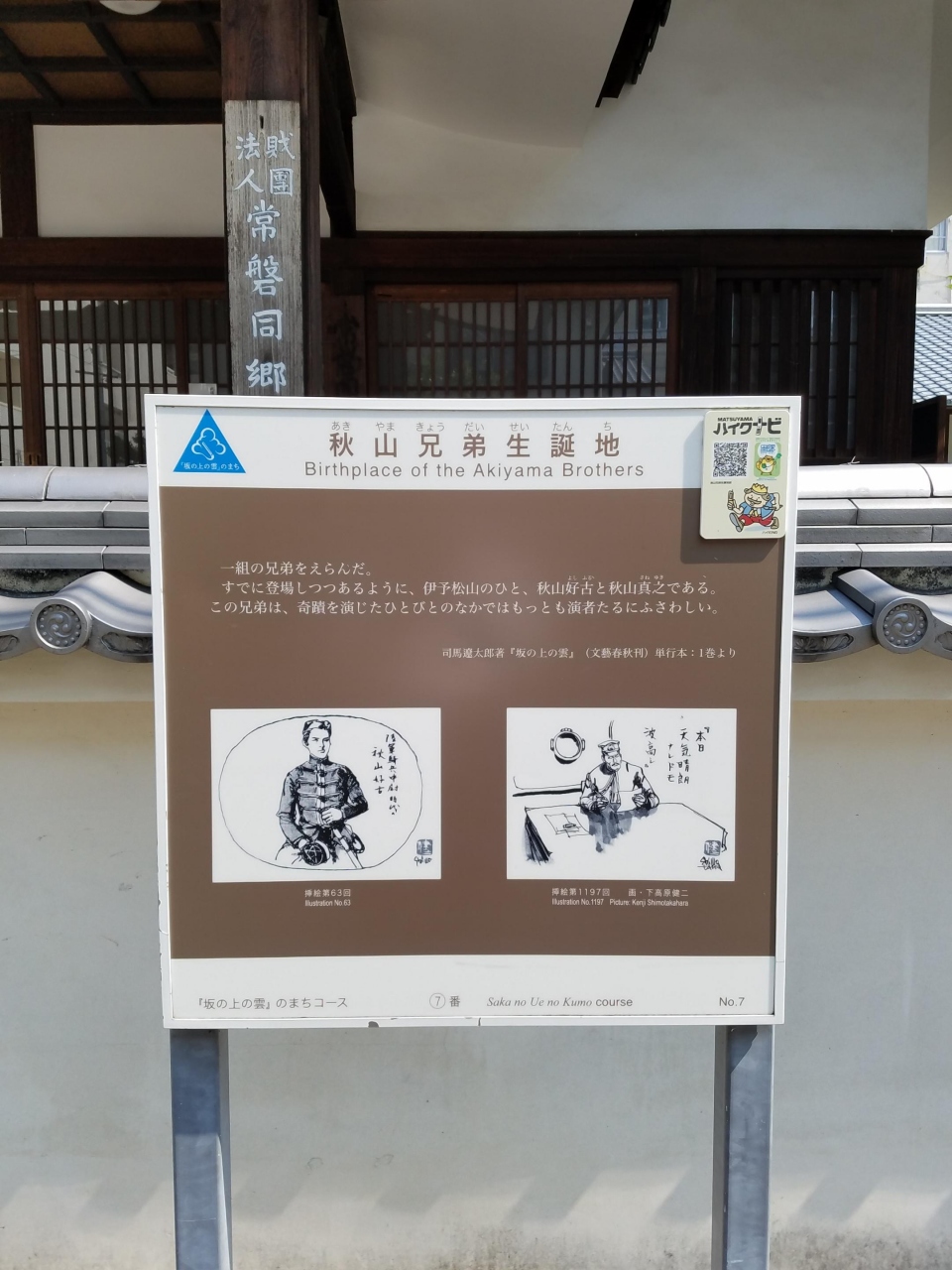 秋山兄弟は、司馬遼太郎著「坂の上の雲」で有名な明治時代を代表する地元松山の偉人です。ロープウェイ通りからすごい入った場所に彼らの生家が復元されてたいます。ボランティアの方が丁寧に説明してくれて、理解が深まりました。