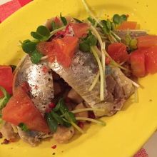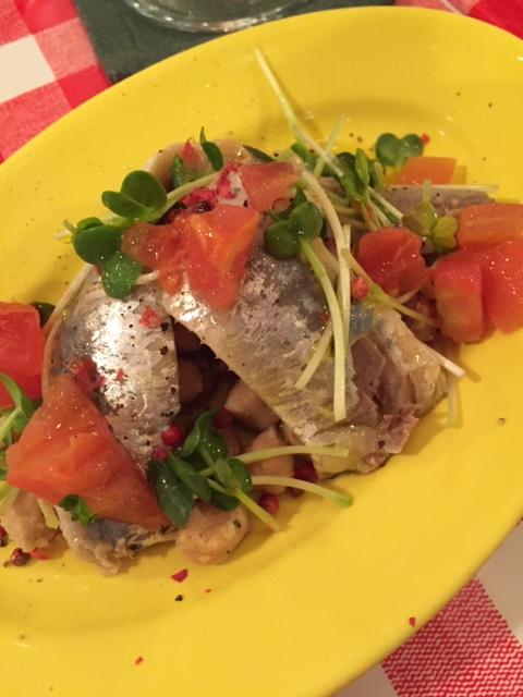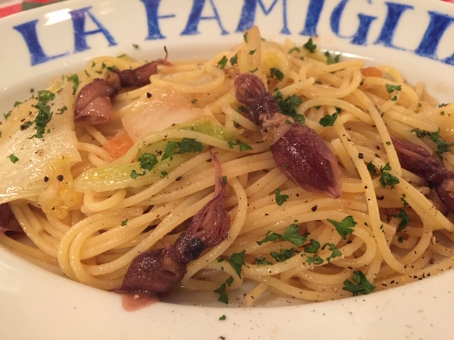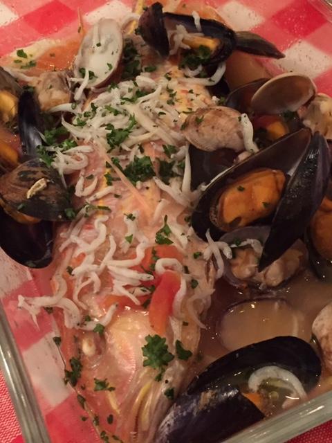 今回はイワシのマリネ、ホタルイカのオイルパスタ、生ハムサラダ、魚介たっぷりのアクアパッツァを注文しました。