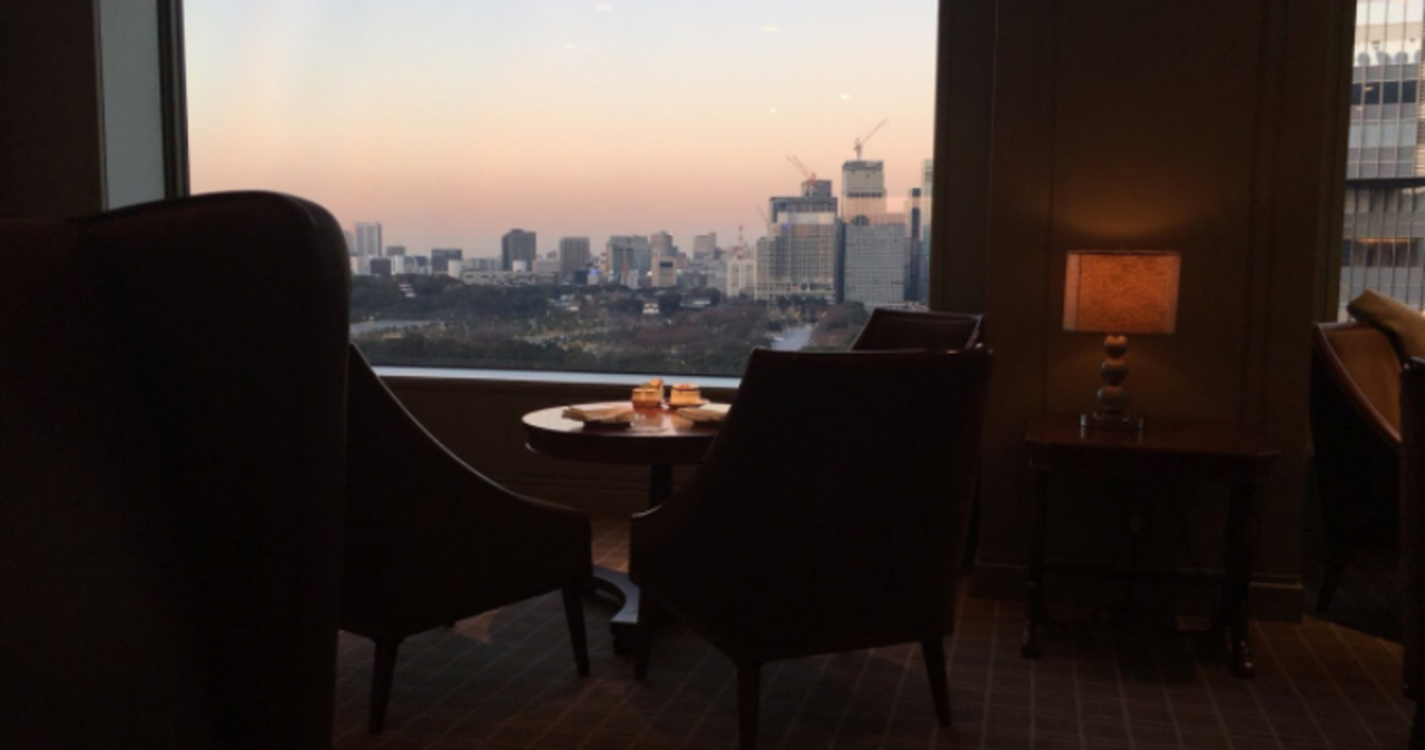 帝国ホテル内、インペリアルラウンジ アクアのアフタヌーンティーセットです。