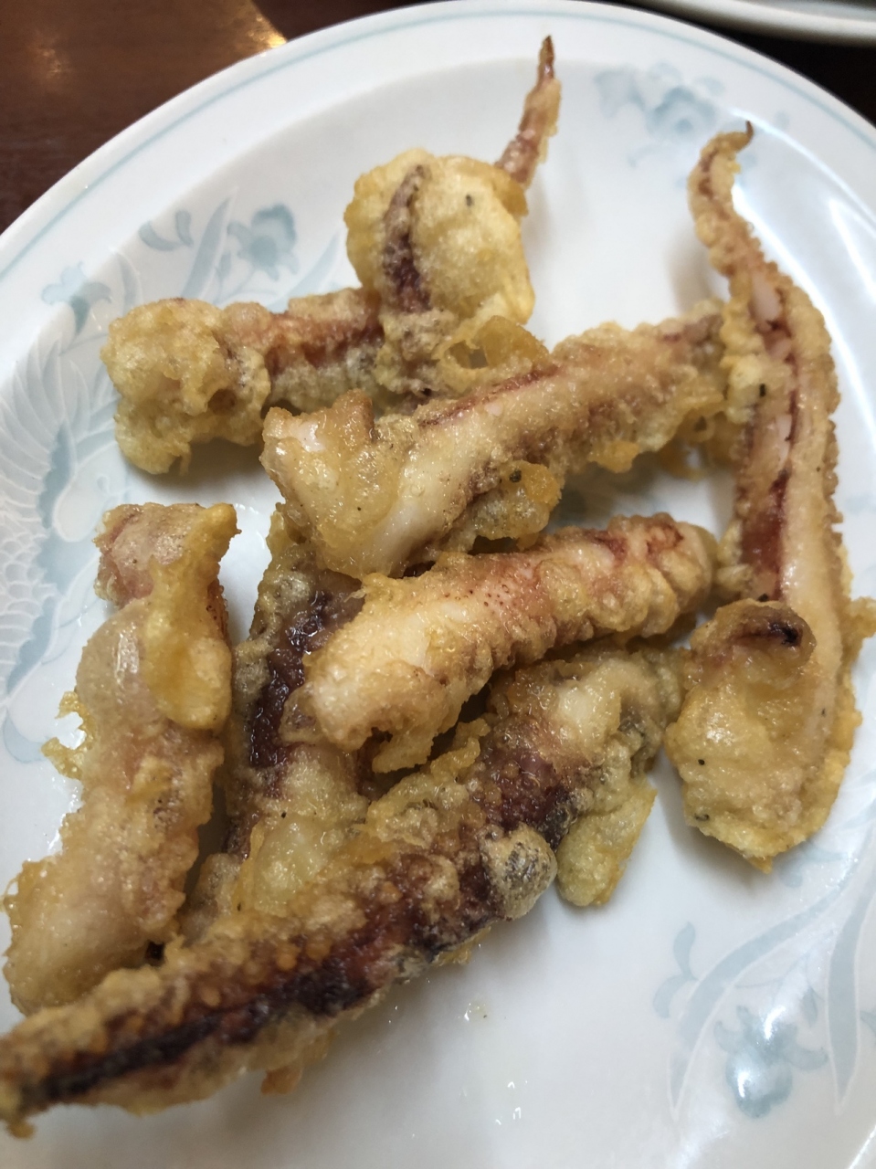 今回は3名…生ビールに、豆腐サラダ、春巻、イカげそ天、玉子炒めを選んだ