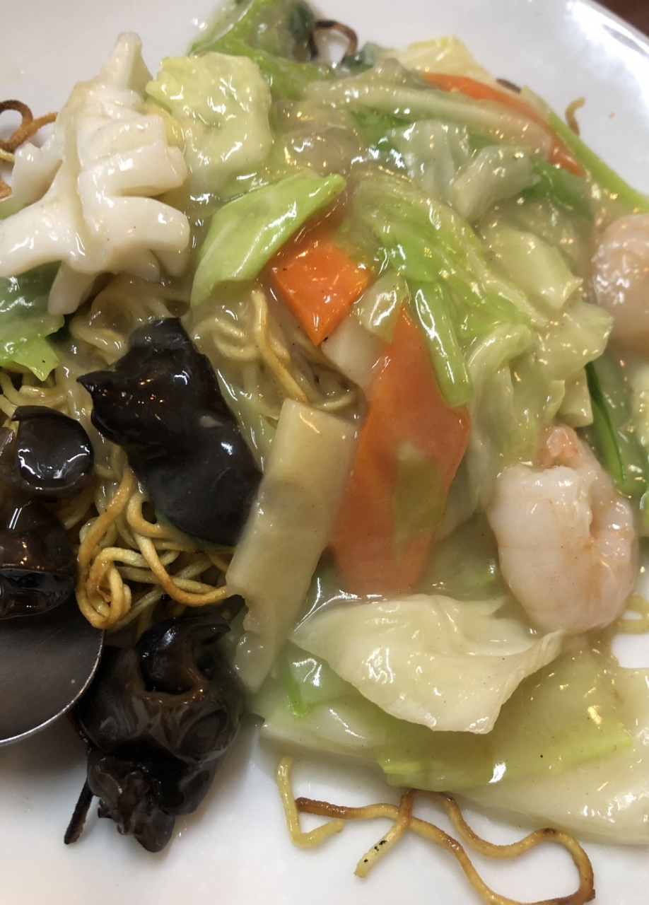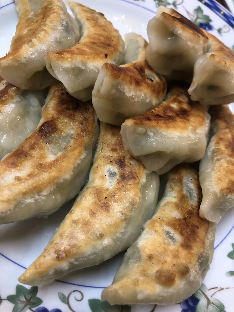 料理は焼き餃子 3人前(写真を撮る前に5-6個食べてしまった)、海鮮焼きそば…